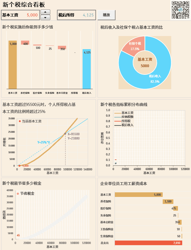 最後用(yòng)一個(gè)圖表組成的(de)動态看闆來綜合觀察新個(gè)稅的(de)情況。