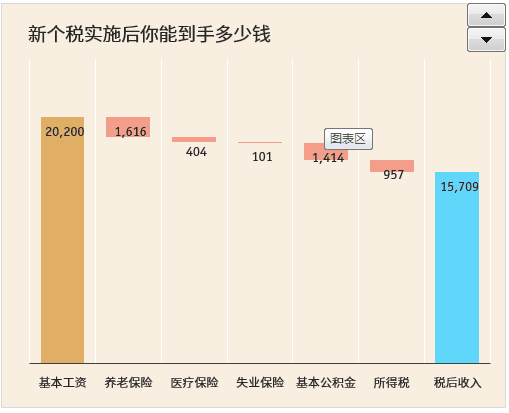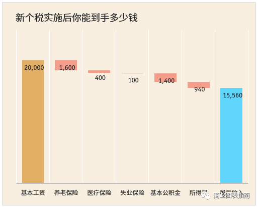 以月(yuè)基本工(gōng)資20000元爲例,用(yòng)一幅瀑布圖來展示: