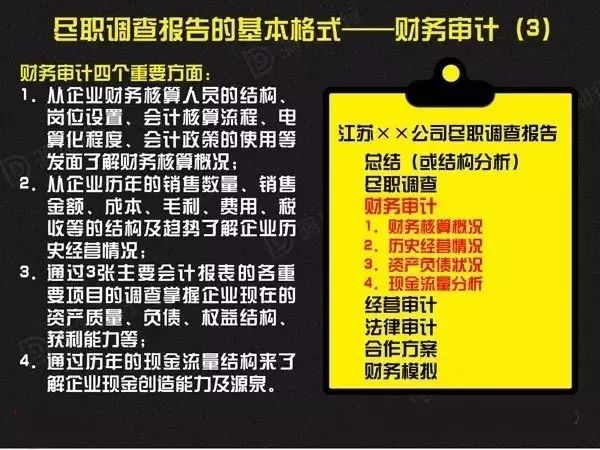 • 達到(dào)财務盡職調查目的(de),适當表達意見和(hé)建議;