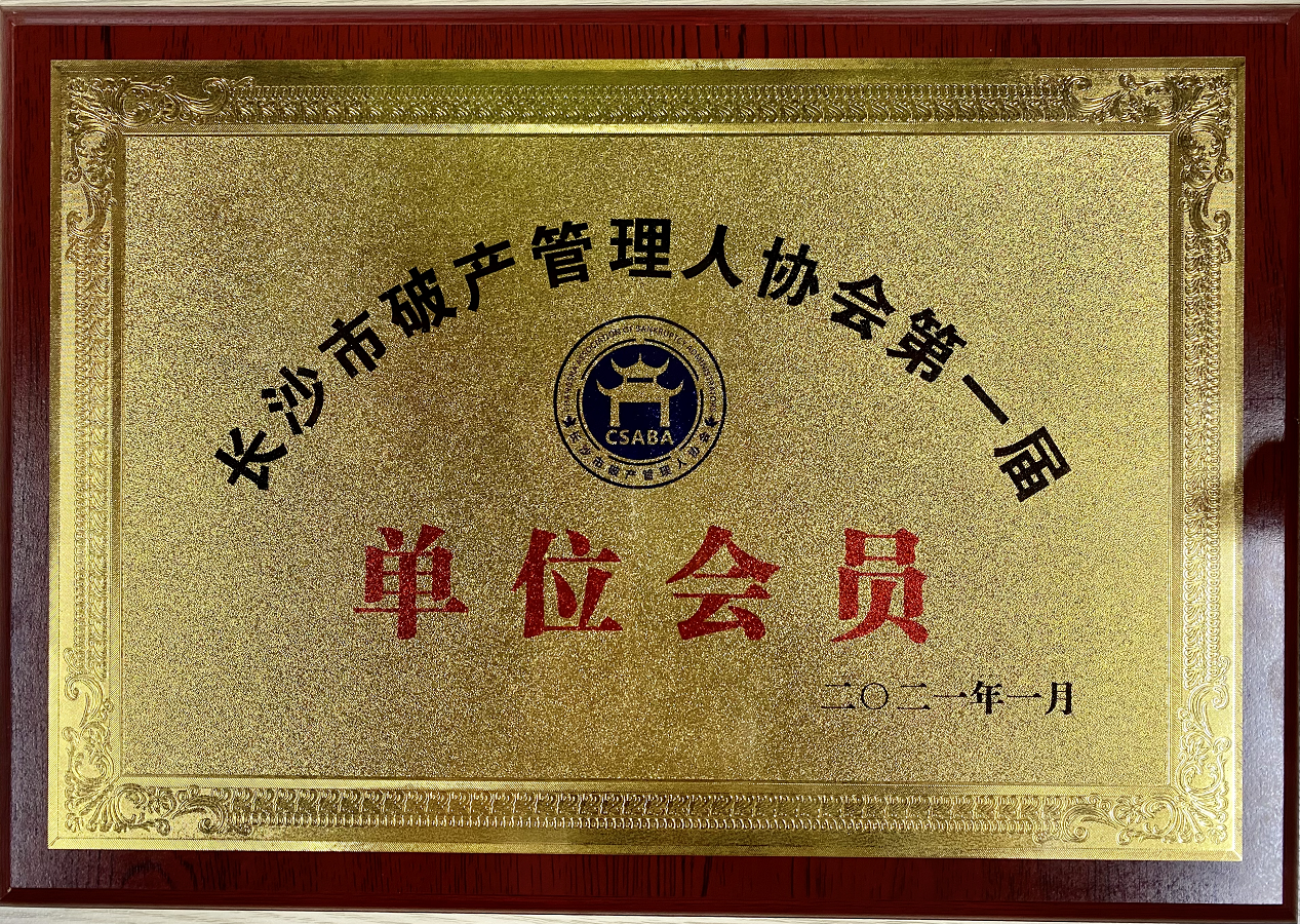 榮幸成爲長沙市破産管理(lǐ)人(rén)協會(huì)會(huì)員單位